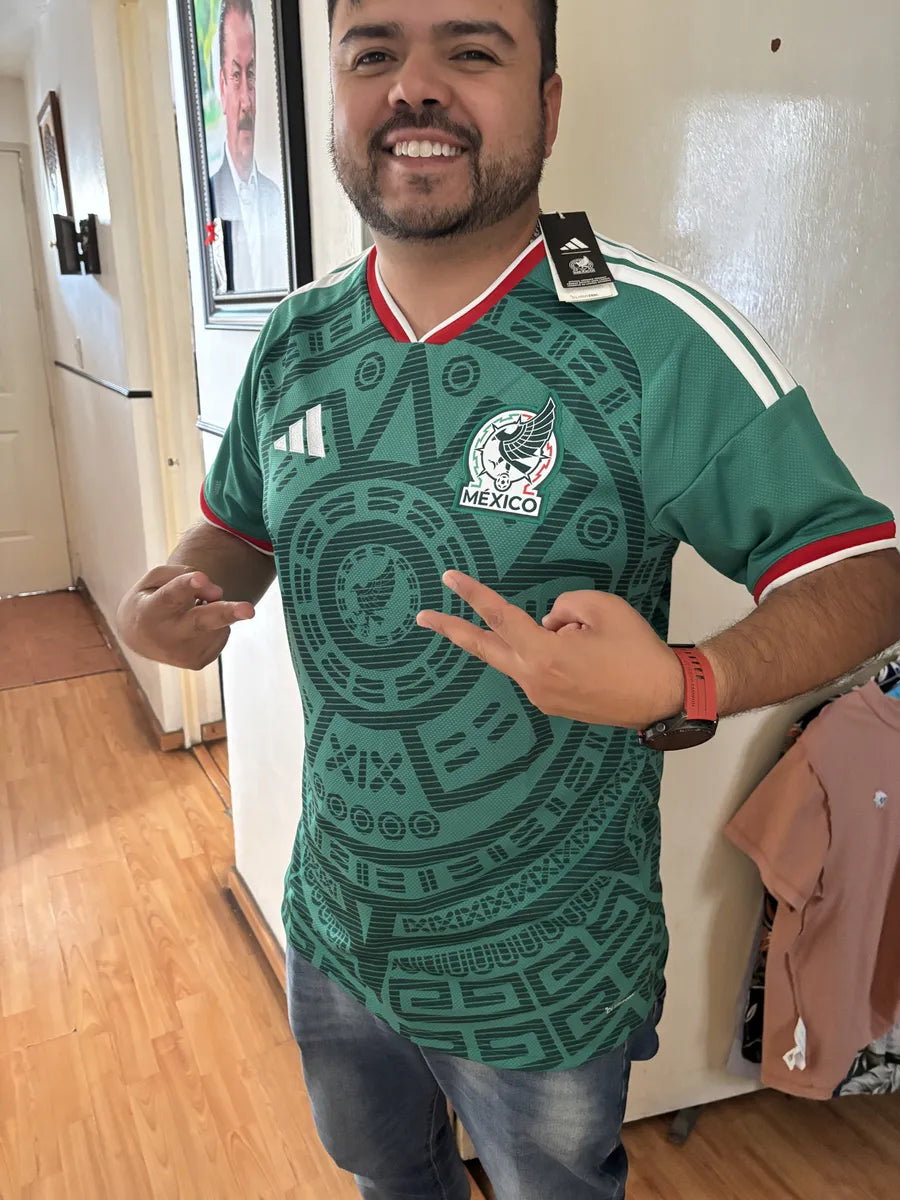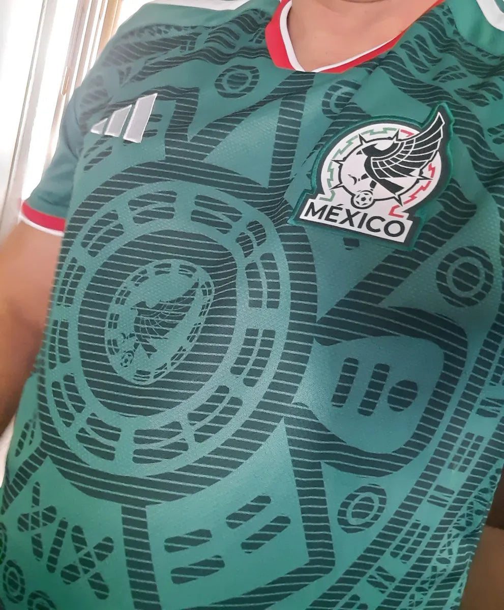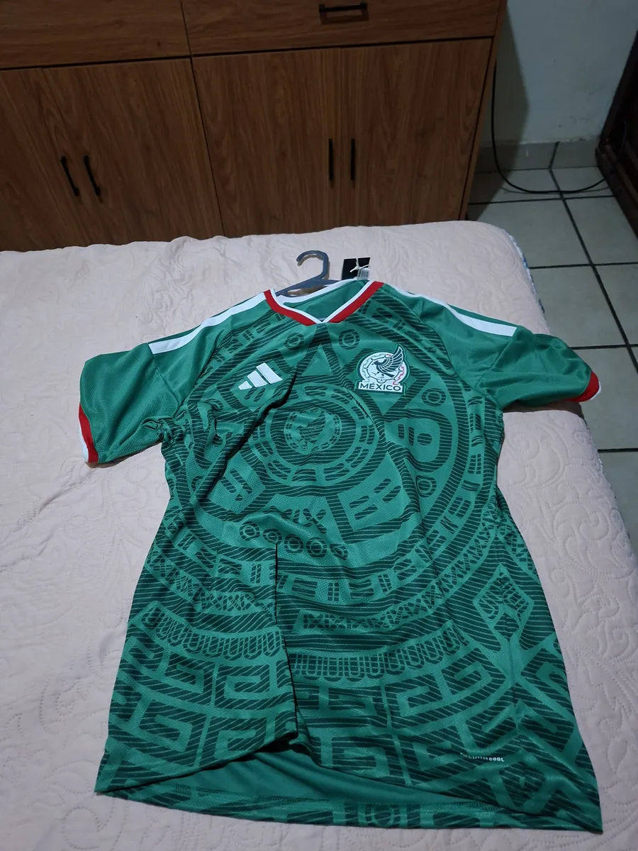 Playera inspirada en la Selección Mexicana, presentada con etiquetas originales que garantizan la calidad del producto.