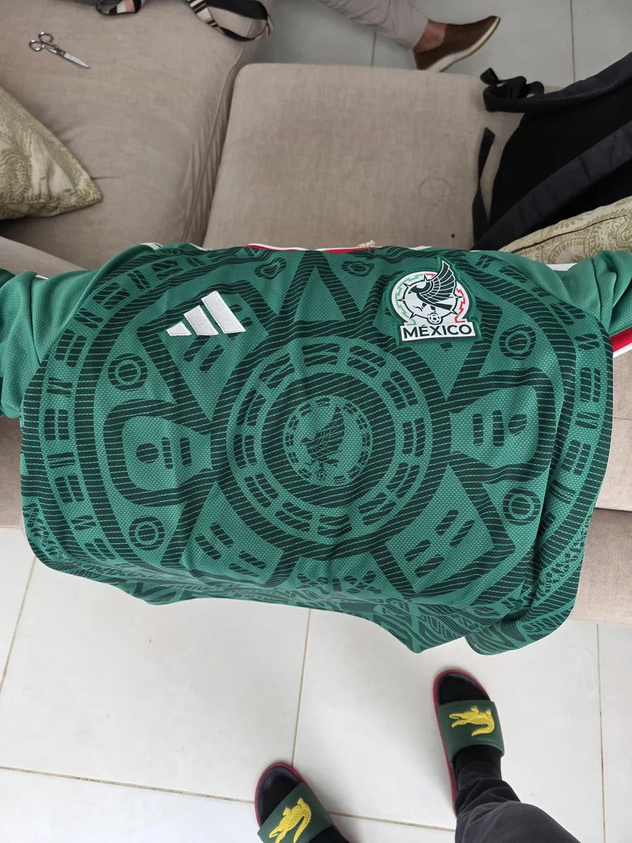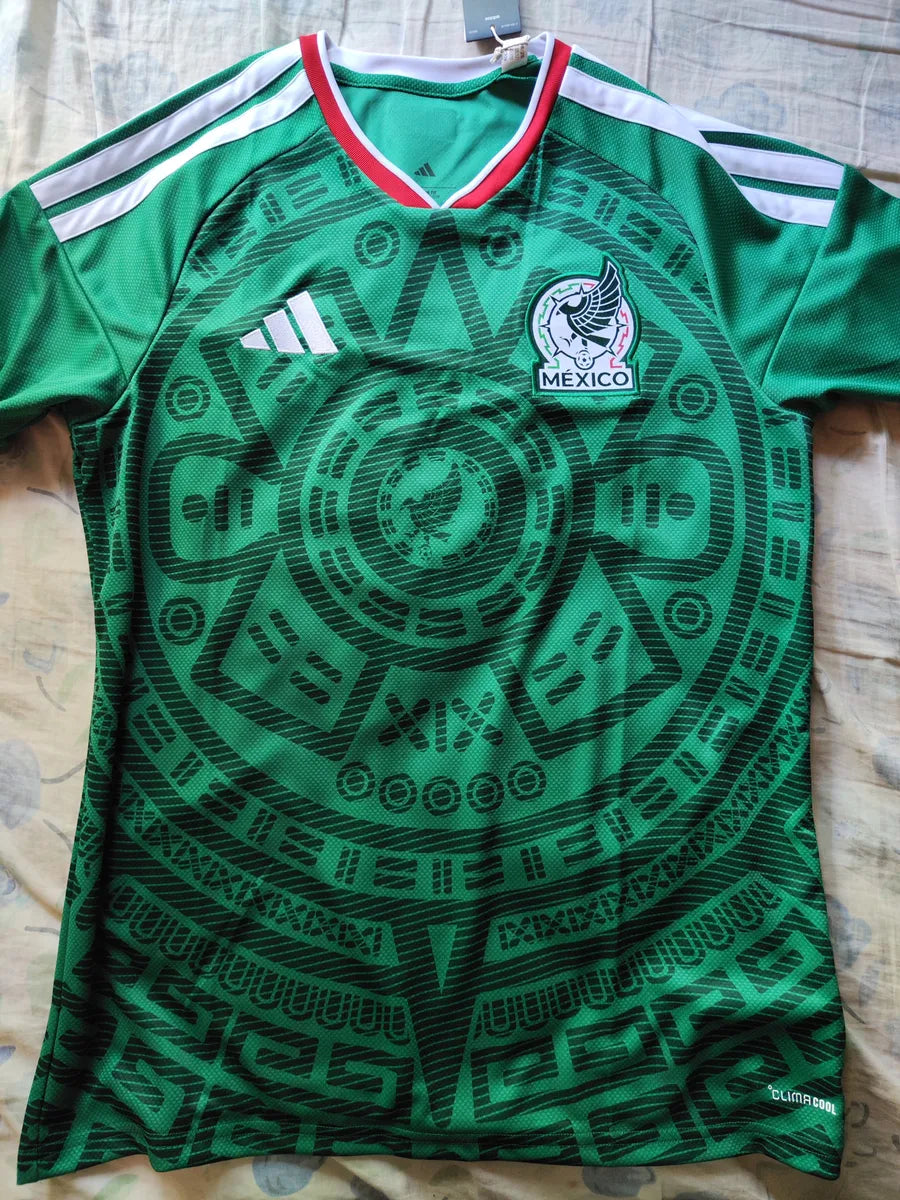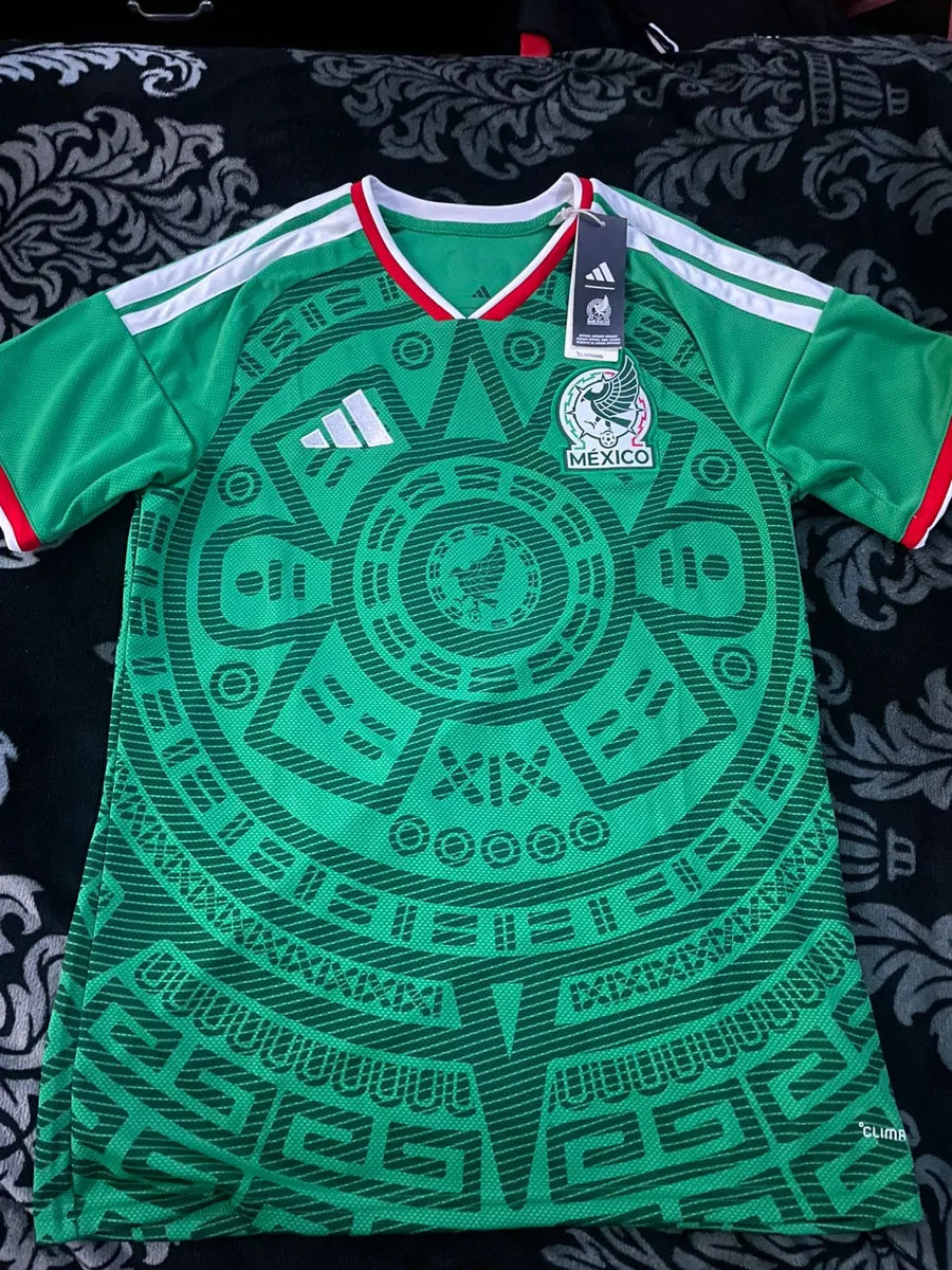 Playera inspirada en la Selección Mexicana, presentada con etiquetas originales que garantizan la calidad del producto.